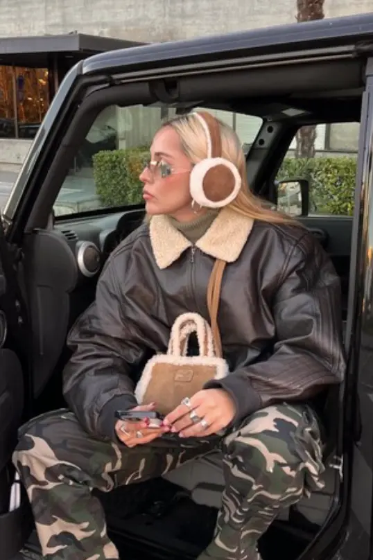 不想被帽子压坏发型的可以尝试耳罩。街拍场上,毛绒耳罩早已成为欧美辣妹的香饽饽。大部分佩戴的都是大毛毛的款式,圆圆的毛绒点缀在耳边,可不可爱先不说,但的确是真显脸小啊!