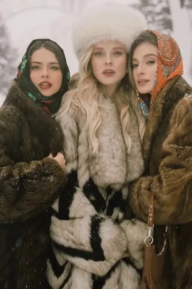 斯拉夫地区气候寒冷,冬季漫长且严酷,保暖的皮草单品成为必不可少的搭配。一方面,皮草的优异保暖性能满足了冬季的实用需求;另一方面,皮草的奢华质感也赋予斯拉夫美学独特的张力,展现女性的优雅与气场。
