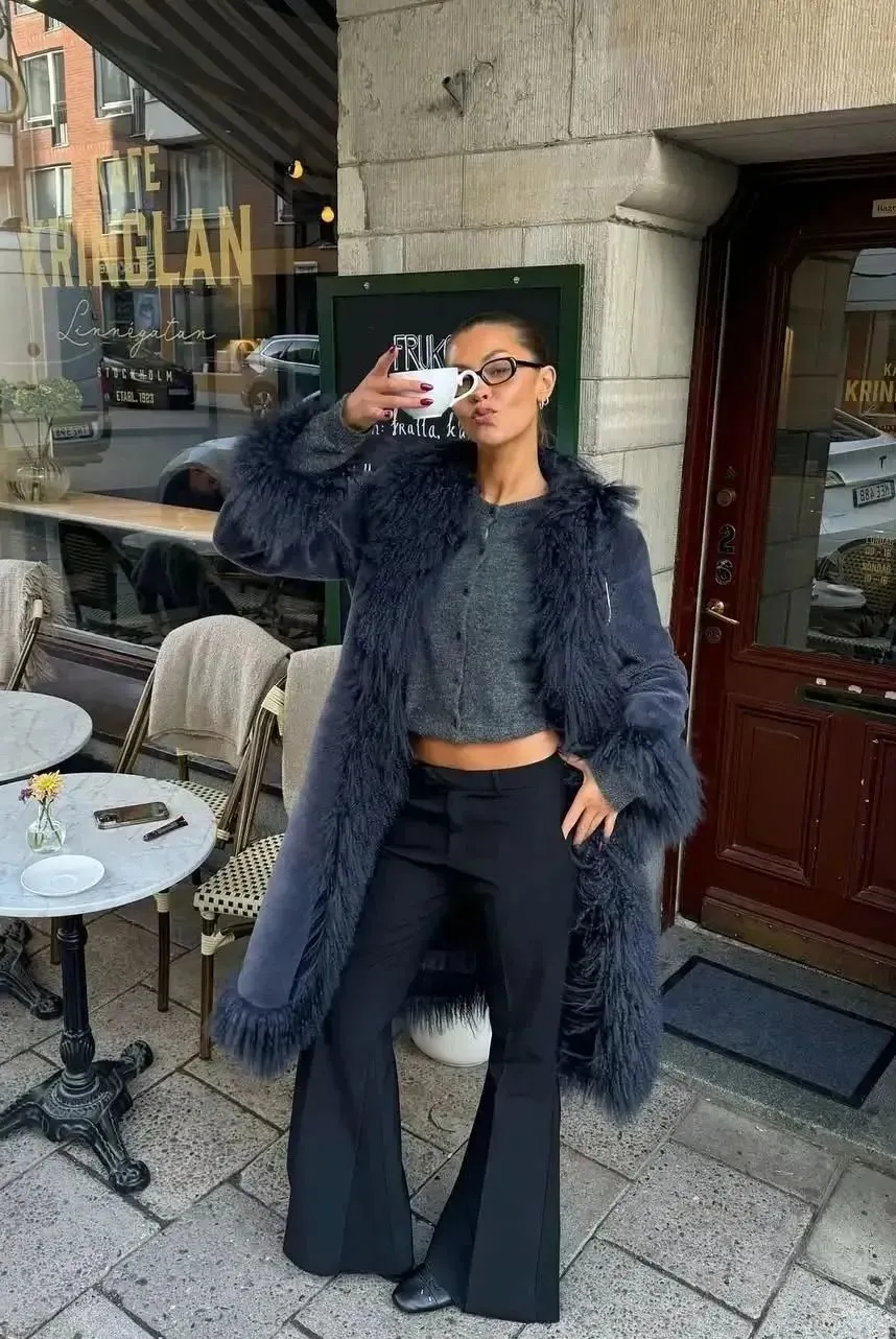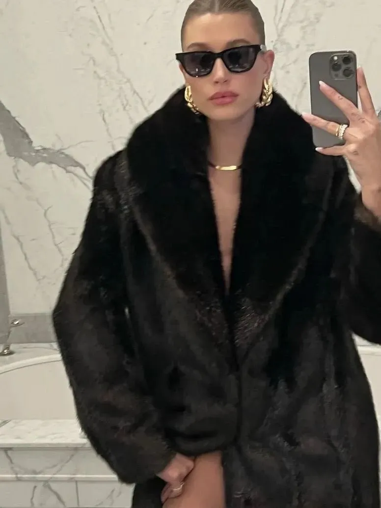 在街拍领域,Hailey无疑是驾驭“斯拉夫女人风”的佼佼者。她的秋冬穿搭充满“斯拉夫女人”气息:All Black造型搭配黑色毛皮大衣,气场十足;红色皮草更显热辣,而灰色皮草则散发出沉稳的大女人气质。