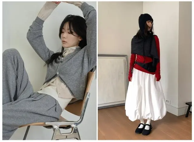 懒得想穿什么的时候,不如将慵懒的家居服穿出门,贴身的打底衣外套上一件针织开衫,直接把在家里那种轻松自如的状态,融入日常的搭配中。