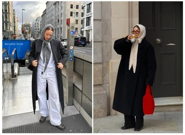 如果不想穿得太臃肿,也可以尝试用细细的条纹腊肠围巾,打造出一种规律、严谨和克制的美感。