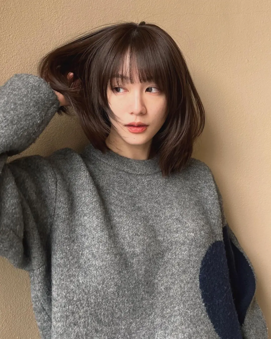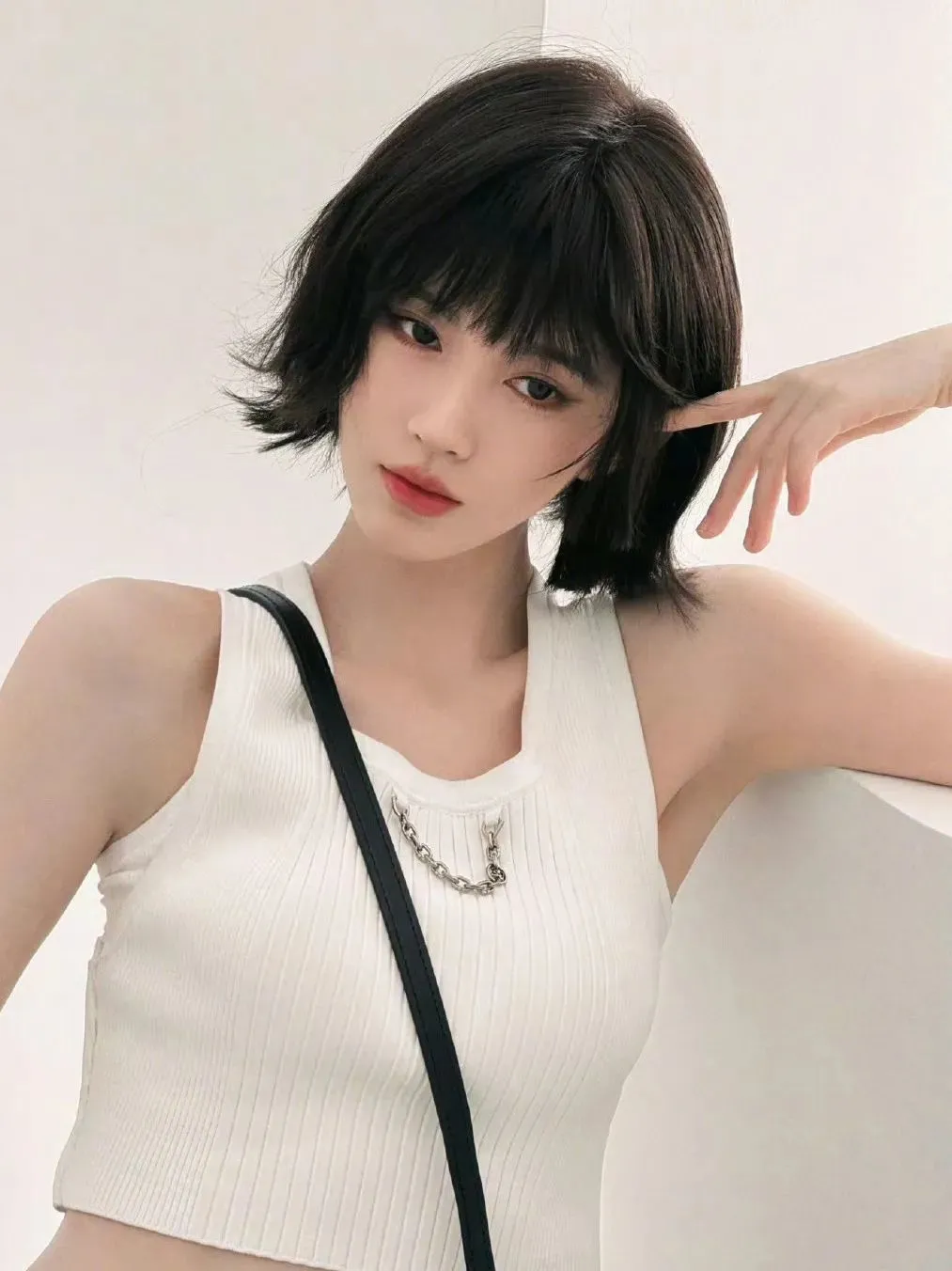 根据五官比例,只要在及肩短发的基础上改变成中分、侧分或者是刘海,造型直接焕然一新。而且这款发型的整体轮廓比较齐整,不太需要靠妆容穿搭的加持,素颜也不会看起来很邋遢。