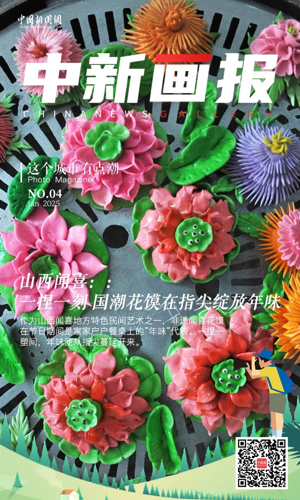 过年怎么能少了“花”的点缀?闻喜花馍一出锅,年味瞬间拉满!作为山西闻喜地方特色民间艺术之一,闻喜花馍在节日期间是家家户户餐桌上的“年味”代表。一捏一塑间,年味便从指尖蔓延开来。朵朵花开,龙腾凤舞,好似一幅幅微缩的山河画卷,将新年的美好祈愿捏进花馍每一道花纹里。“拿捏”住了中国年的浪漫,唤醒了人们地道的年俗记忆。色香味全开,仪式感拉满。这个春节,来闻喜把“年味”捧在手心里!图为山西闻喜花馍艺人制做的面花。