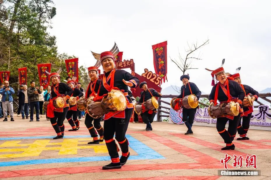 图为2月1日,游客在大瑶山盘王界景区观看瑶族蒙虢舞表演。高如金 摄