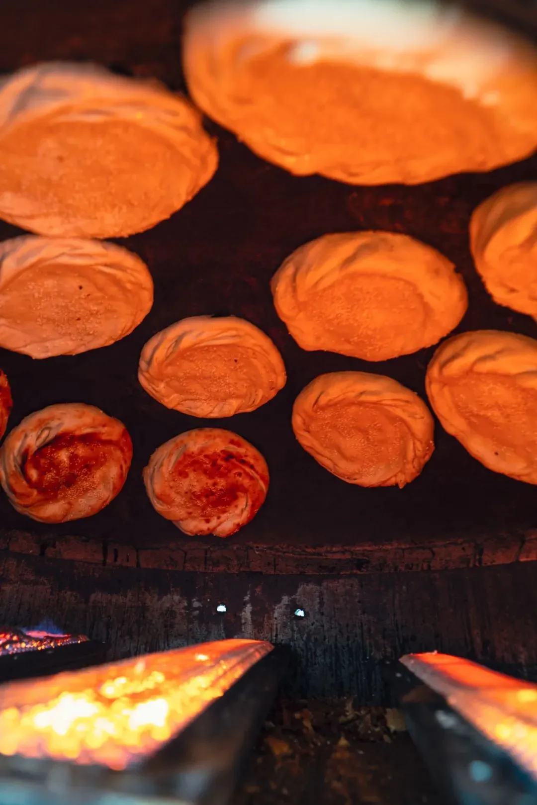 鸡窝烧饼在特制的烤炉内不断吸收热量