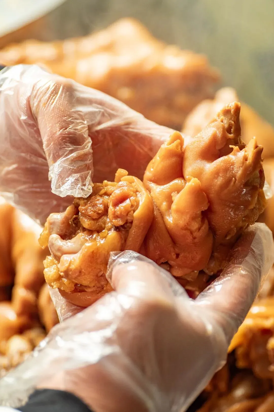 图一:刚出锅的鹿城猪蹄,糯肉轻轻一撕便会脱骨而下。