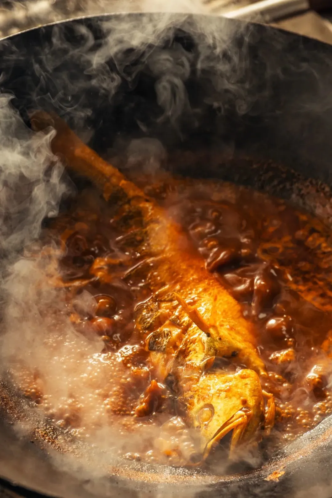 图一:烹饪中的黄鱼白豆腐,浓郁鲜香。