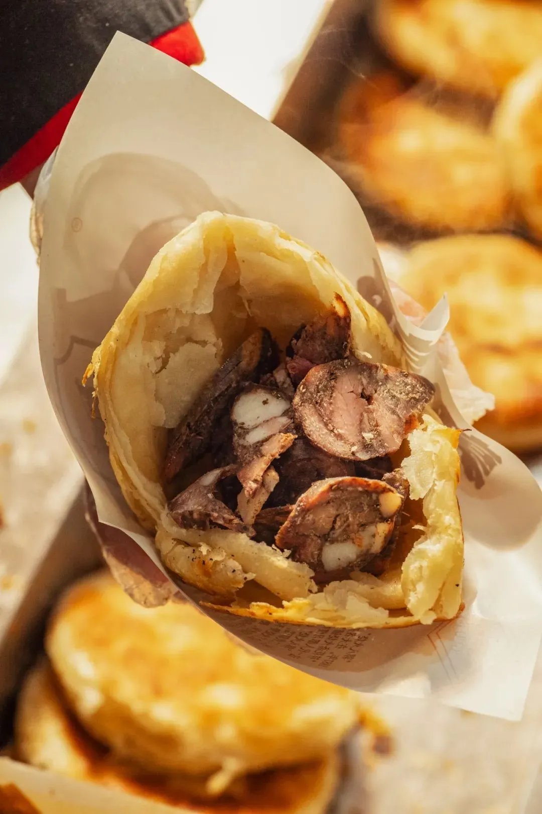 当天色渐暗,大名的碳水依旧可以抚慰忙碌的肠胃。如果说烧饼是可以随身出行的精妙小吃,那么肉饼就是这里正餐餐桌上尤为点睛的一道珍馐。