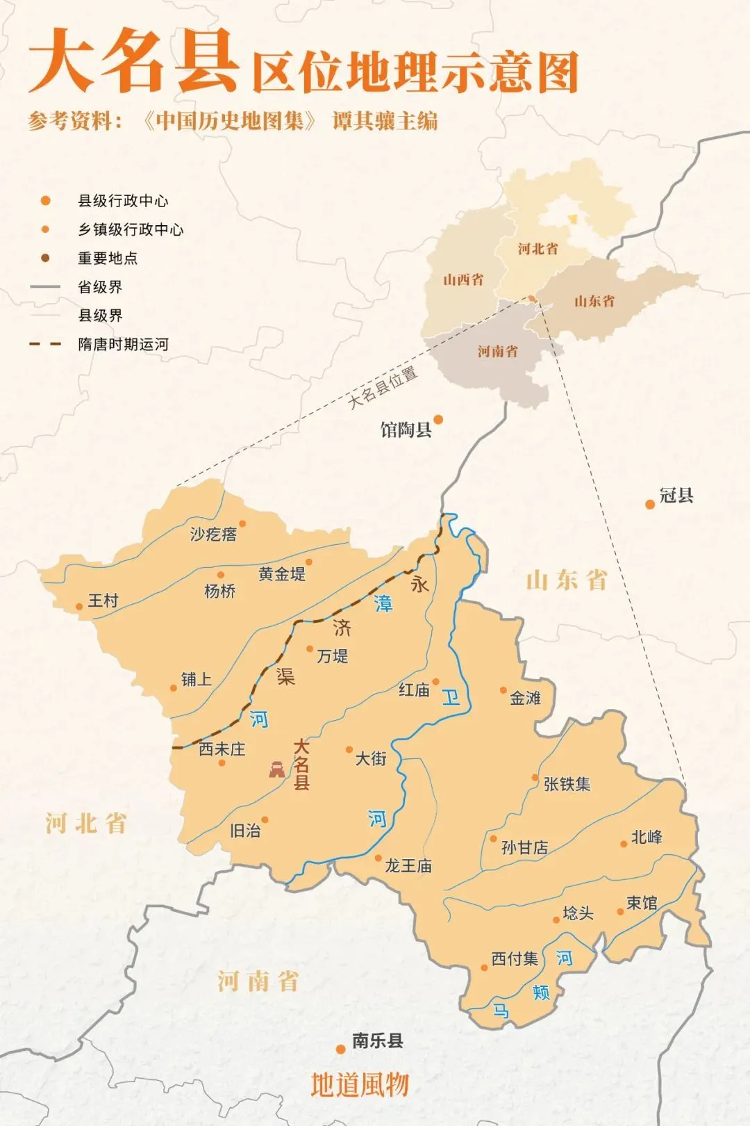 地处华北平原之中的河北省邯郸市大名县,有着冀鲁豫三省交界的特殊位置,而再将目光放大,在山河四省的“版图”中,她的地理还位于中心“C位”。这也造就了大名能集华北最具特色的物产于一身的地位。漳河、卫河、马颊河纵贯全境,加之地势平坦、土地肥沃,小麦、玉米、花生、芝麻、大蒜、山药等都成为这里一张张闪亮的名片。