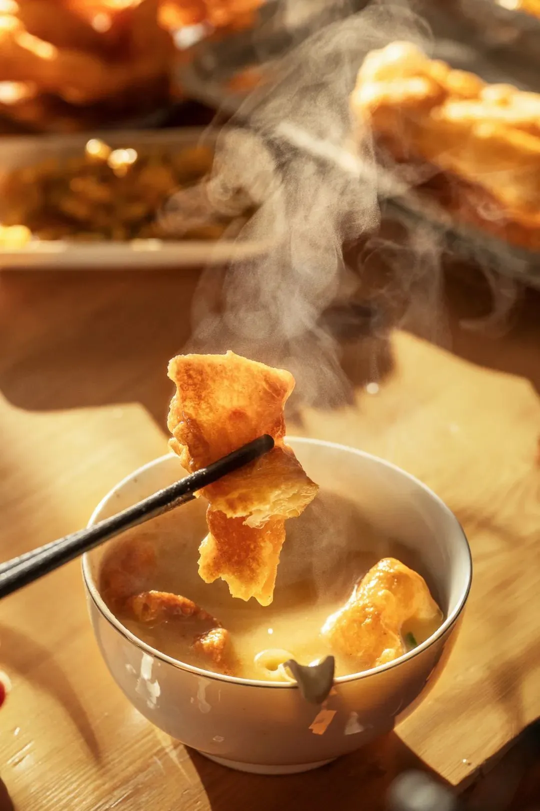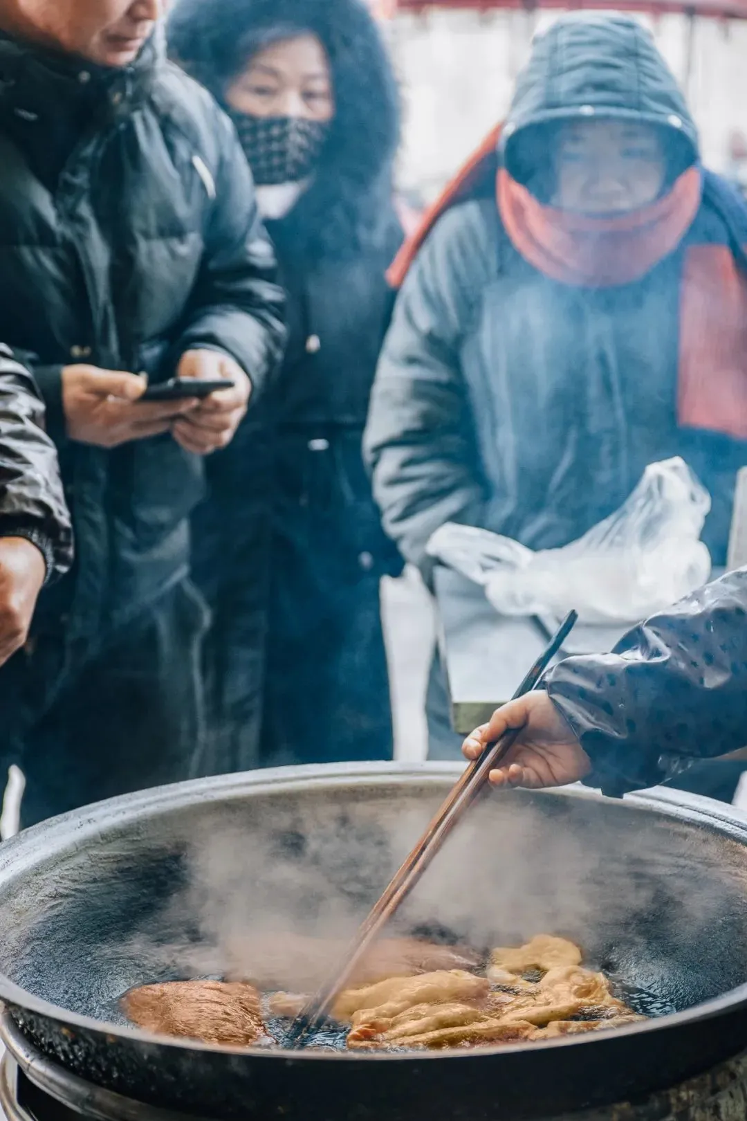 那么你可以去大名,听油锅中的滋滋声、看蒸笼里的炊气,在这里每一个转角出现;也可以与本地人不分彼此,在浩浩荡荡的排队中、在夹满香肠的火烧中、在浸入馒头的馓里,享受碳水最放肆的快乐——这是过年的味道,真正的“百味大名,暖意融情”!