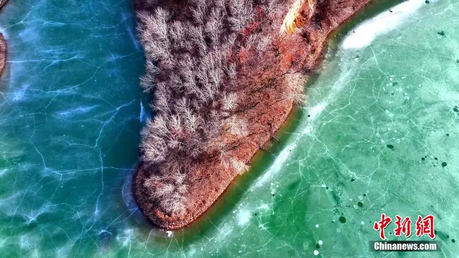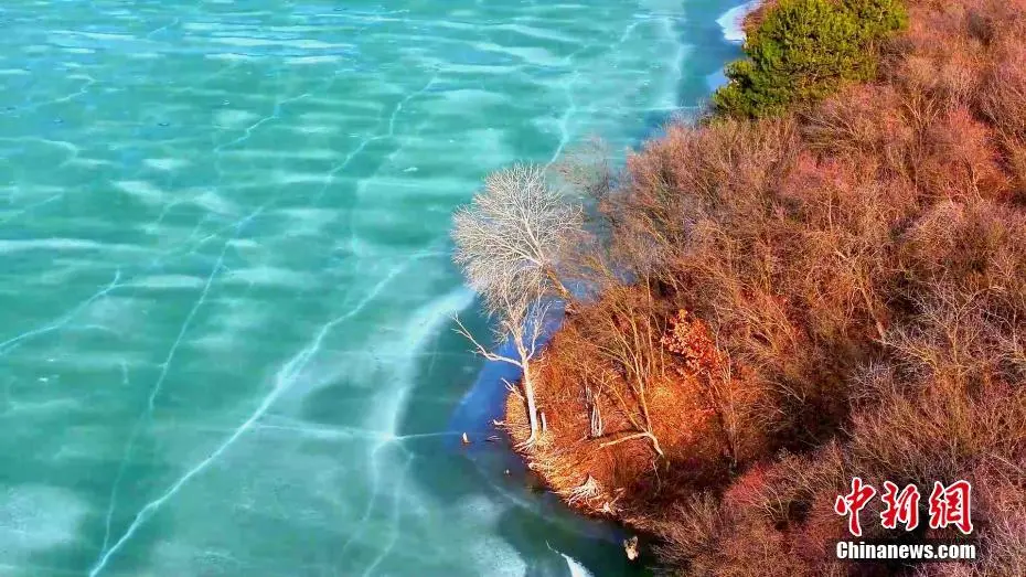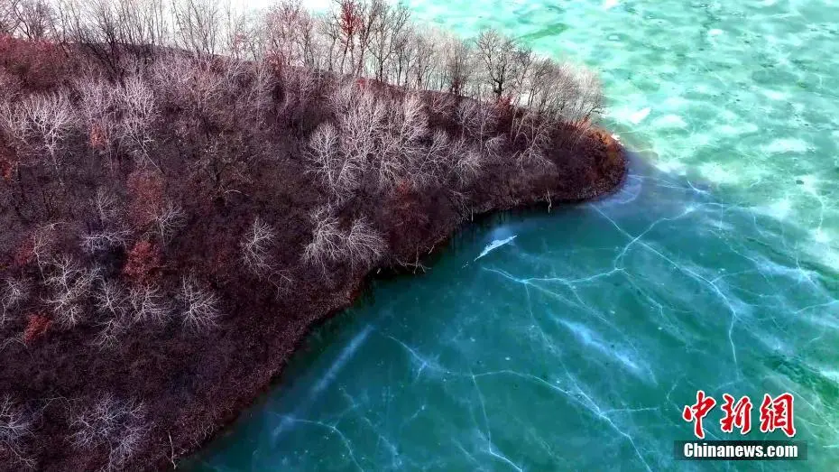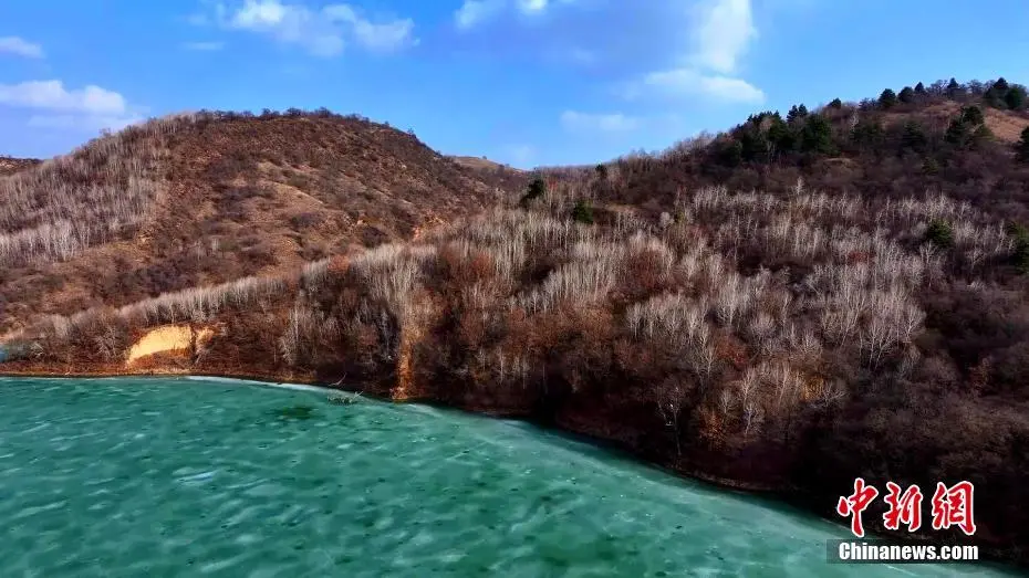 近日,位于黄土高原上的延安市甘泉县石门镇岳屯水库景色如画。春风轻拂下冰面被缓缓撬动,水色渐显。碧绿水面在蓝天映照下宛如翡翠,如梦如幻。图为位于黄土高原上的岳屯水库春景如画。白腾 摄
