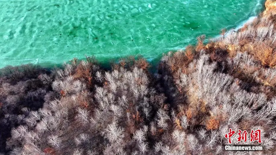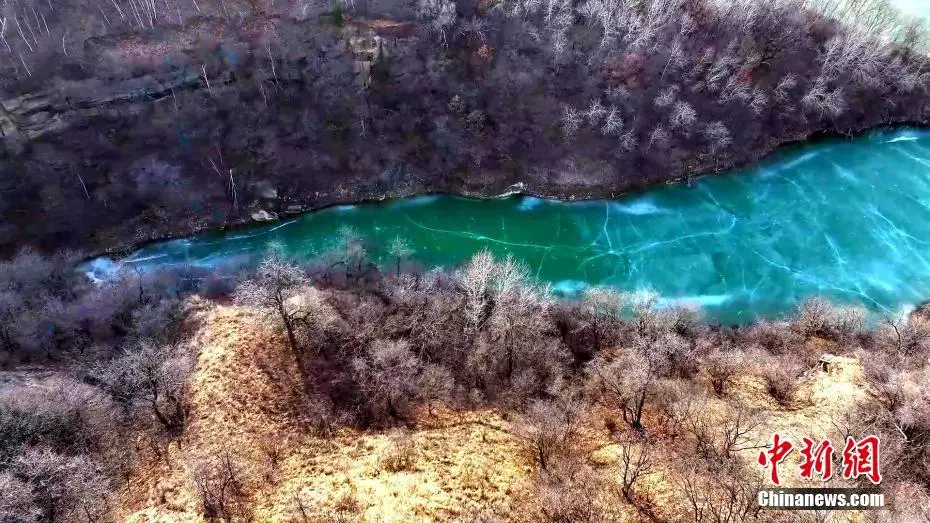 近日,位于黄土高原上的延安市甘泉县石门镇岳屯水库景色如画。春风轻拂下冰面被缓缓撬动,水色渐显。碧绿水面在蓝天映照下宛如翡翠,如梦如幻。图为黄土高原上的岳屯水库春景如画。白腾 摄