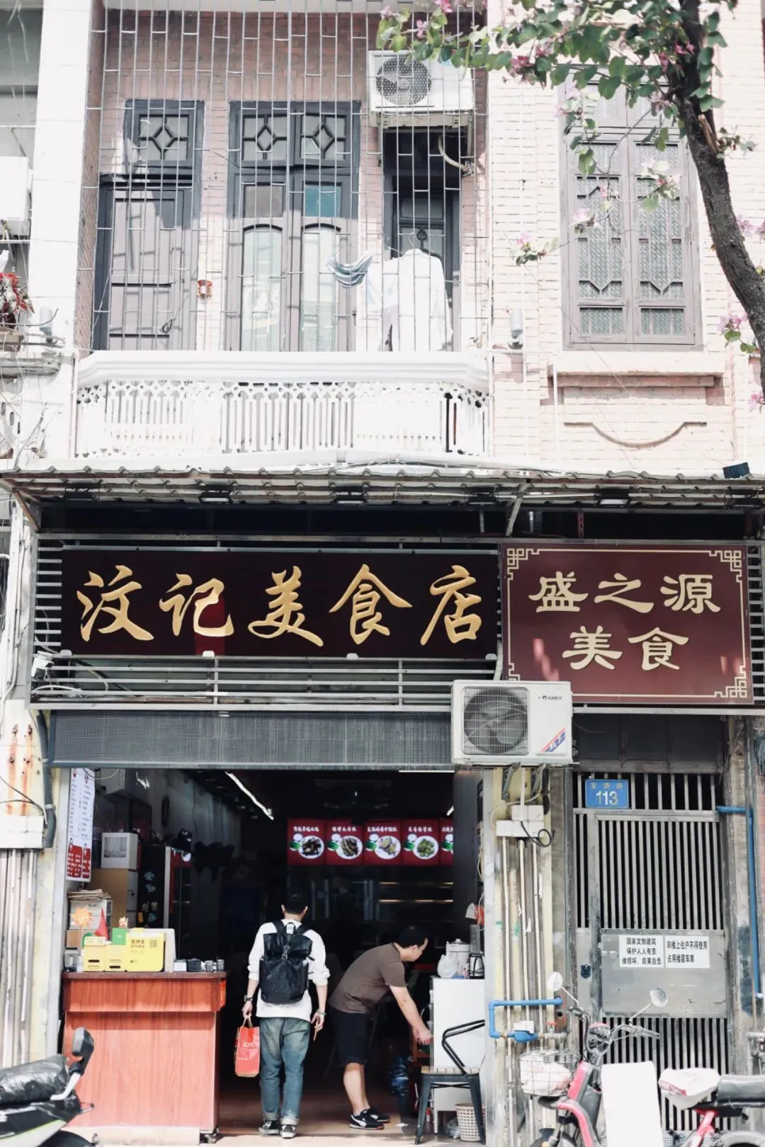 还来不及去看每一栋老宅,上面精致的巴洛克式卷曲漩涡纹,和罗马式三角山墙,先奔向了一家附近街坊爱去的汶记美食店。