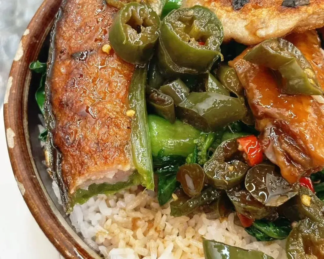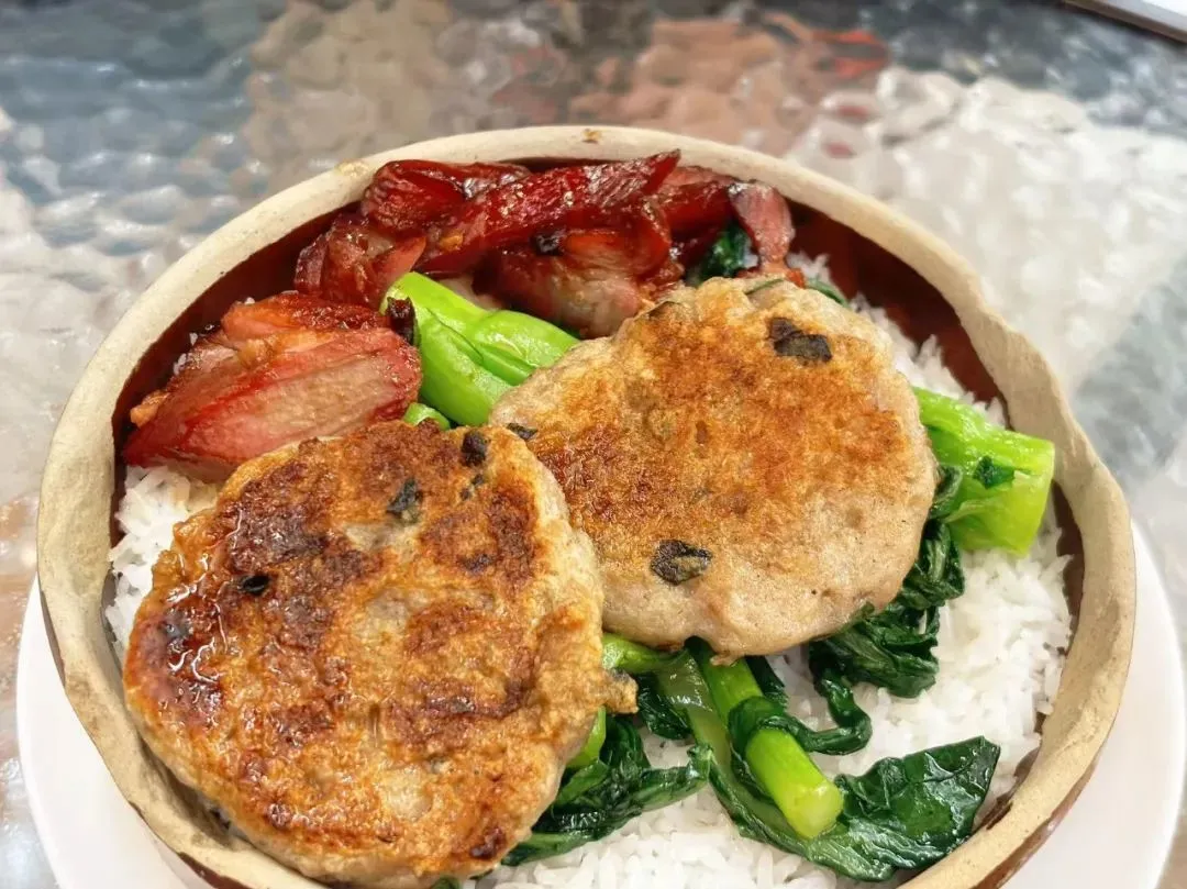 特意要的是瘦点的叉烧,再让阿姨淋上两勺卤汁和辣椒圈。