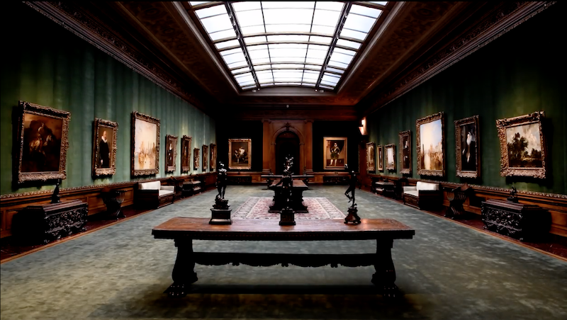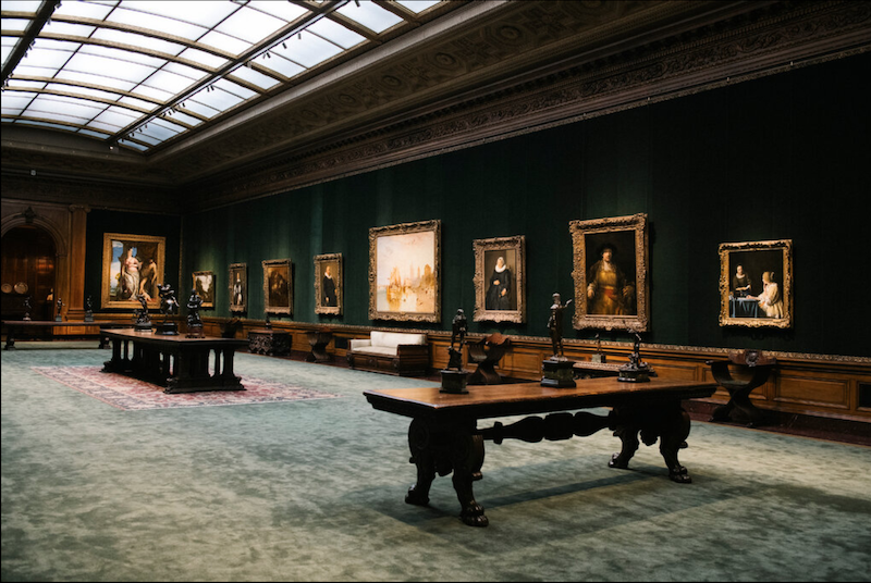 西画廊是一个像机场跑道一样长且宽的房间,专为艺术品而建。1915年时,西画廊是纽约市最大的私人画廊,这里陈列着一些弗里克收藏中最受人喜爱的珍品。90年过去了,这些珍品依旧被定格在这里。