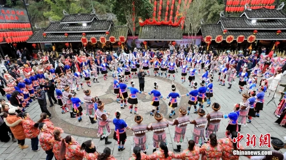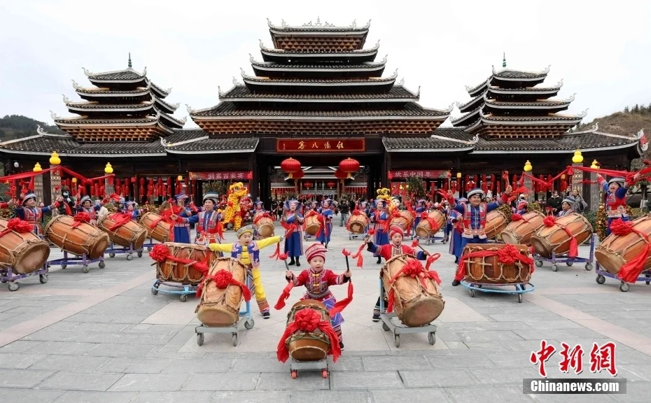 程阳八寨还策划承办了全国“村晚”、多耶节、林溪花炮节等一系列民俗节庆活动。图为2024年全国春节“村晚”主会场活动在广西三江侗族自治县精彩上演。龚普康 摄