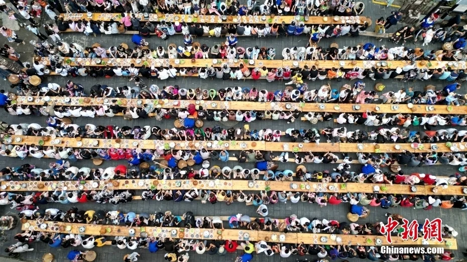 游客们在程阳八寨品尝百家宴。龚普康 摄