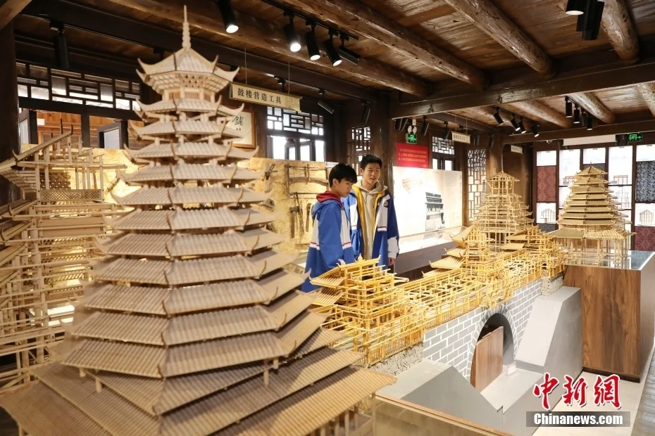 游学学生在参观位于程阳八寨中的侗族木构建筑博物馆。龚普康 摄