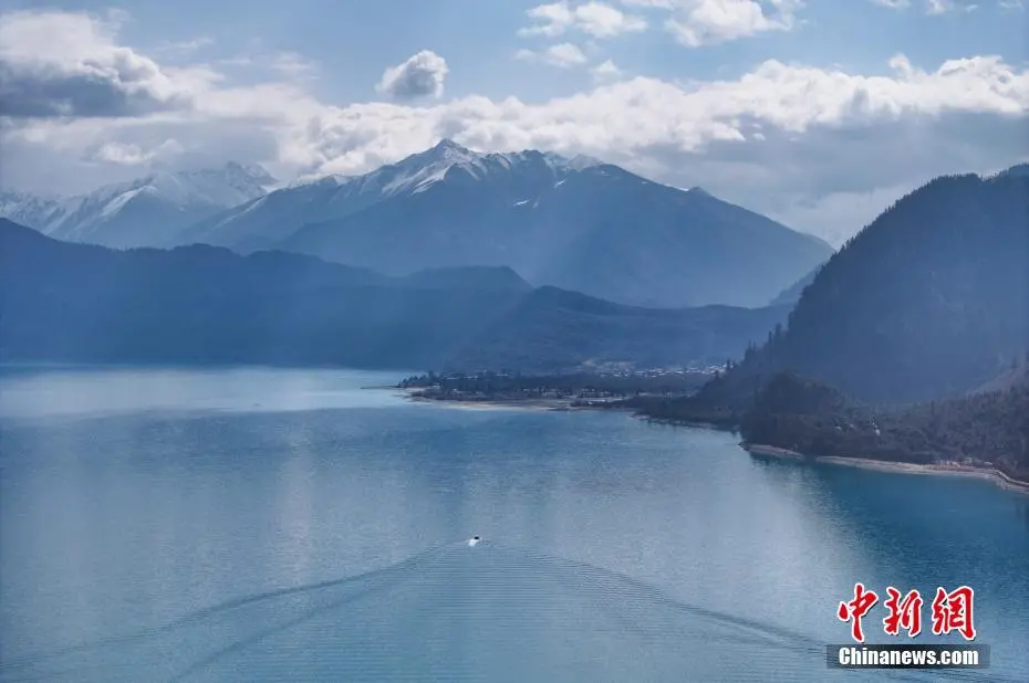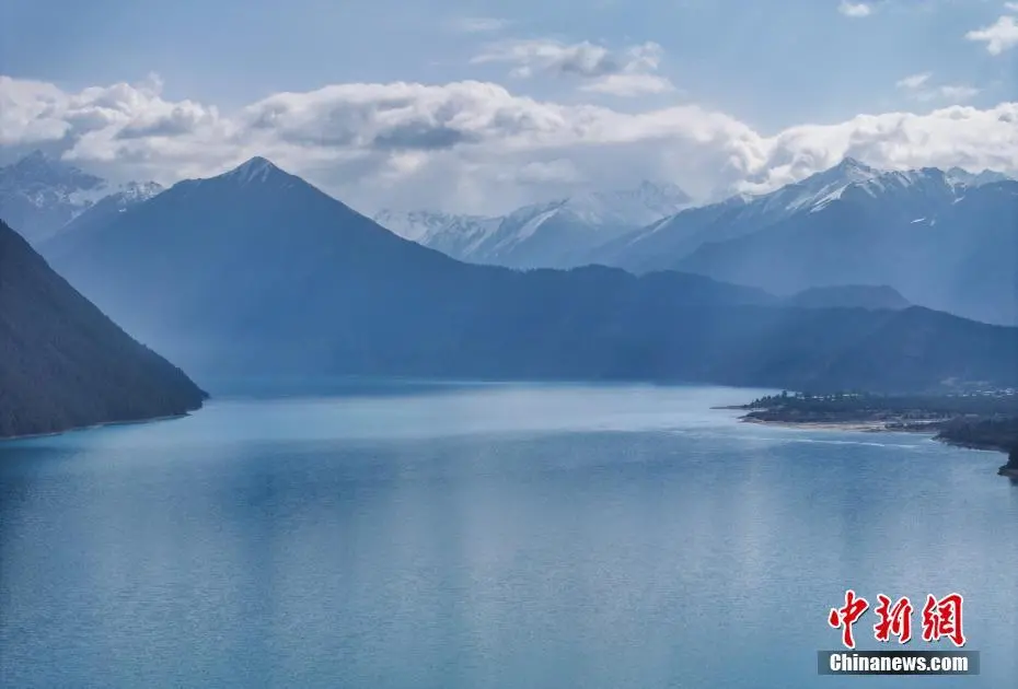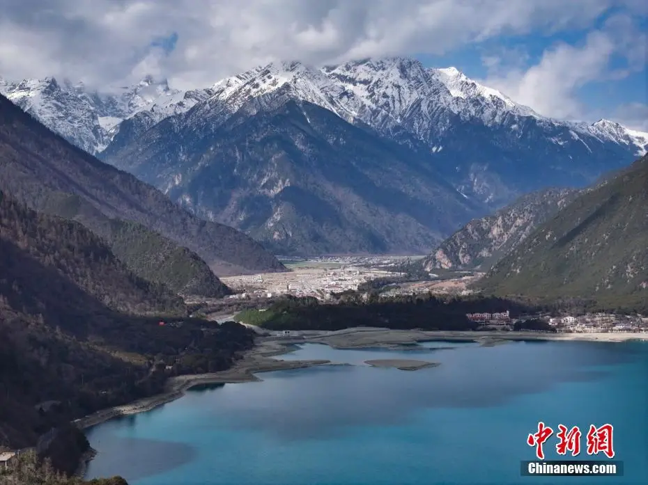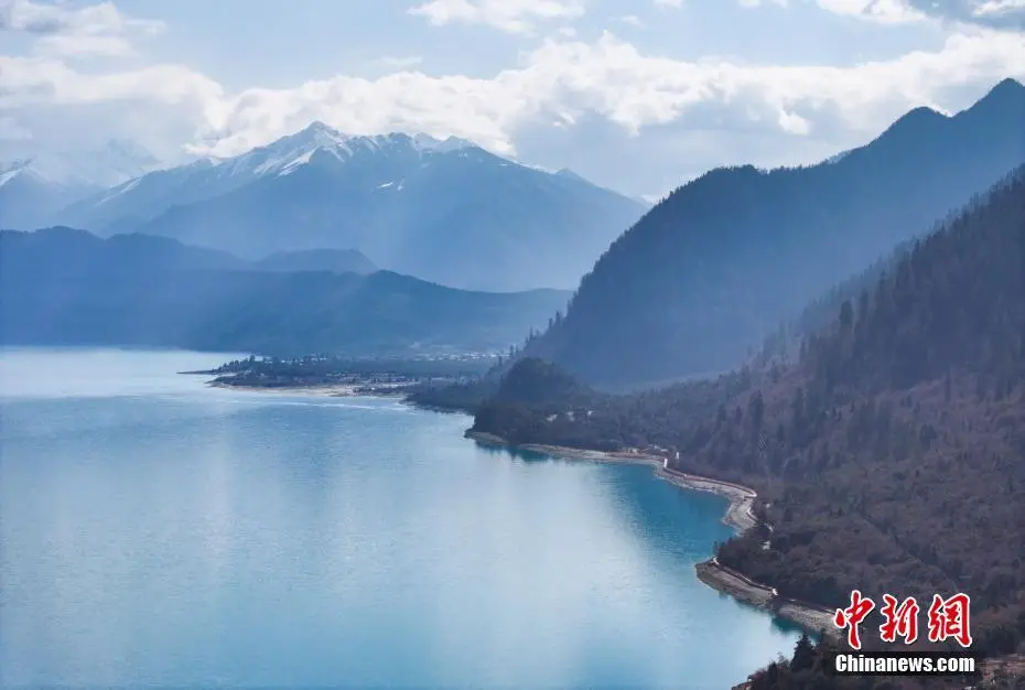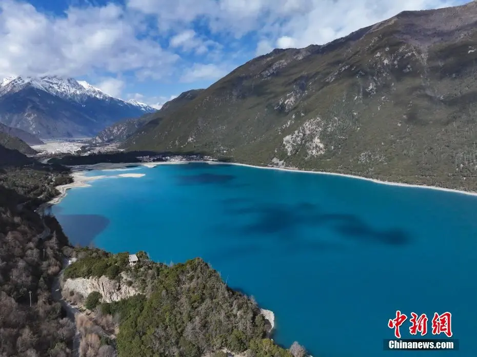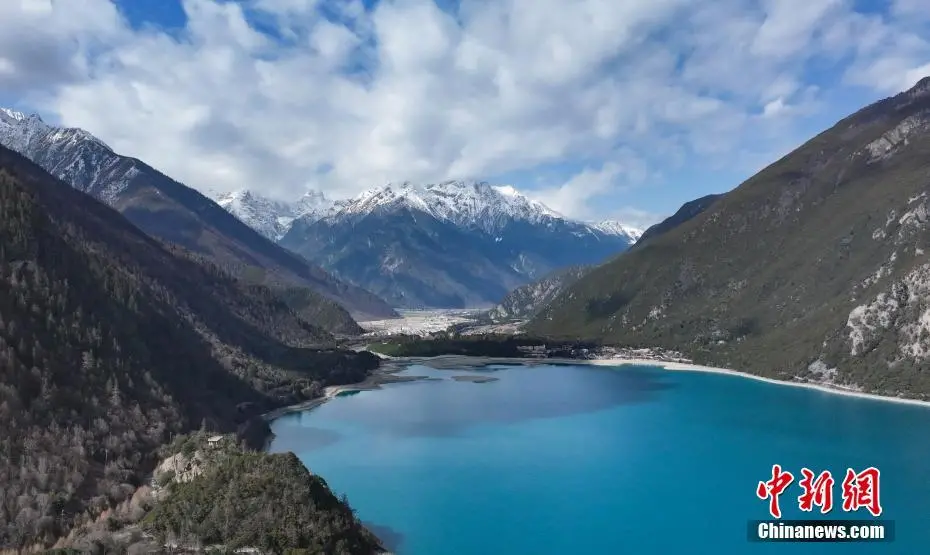 3月30日,航拍巴松措春日风景。巴松措又名错高湖,位于西藏自治区林芝市工布江达县,是西藏首个自然风景类国家5A级旅游风景区。从空中俯瞰巴松措,碧蓝的湖水被雪山、森林环绕,宛如镶嵌在群山间的“蓝宝石”。(无人机照片)中新社记者 马铭言 摄