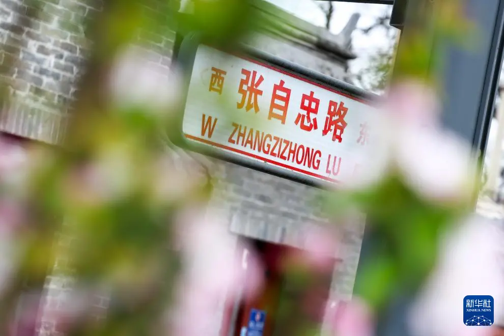 鲜花掩映下的北京市东城区张自忠路(3月28日摄)。