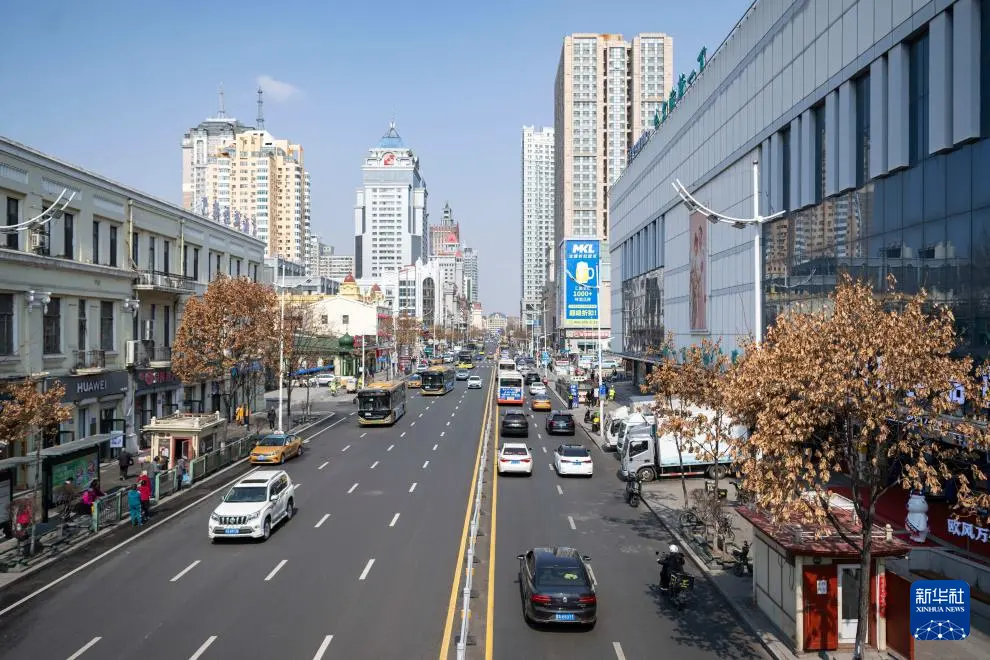 4月8日,在哈尔滨市道里区,车辆在尚志大街上行驶。