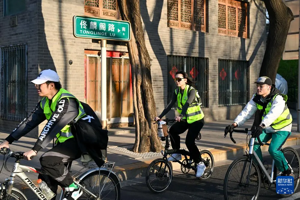 市民在北京市西城区佟麟阁路骑行(3月30日摄)。