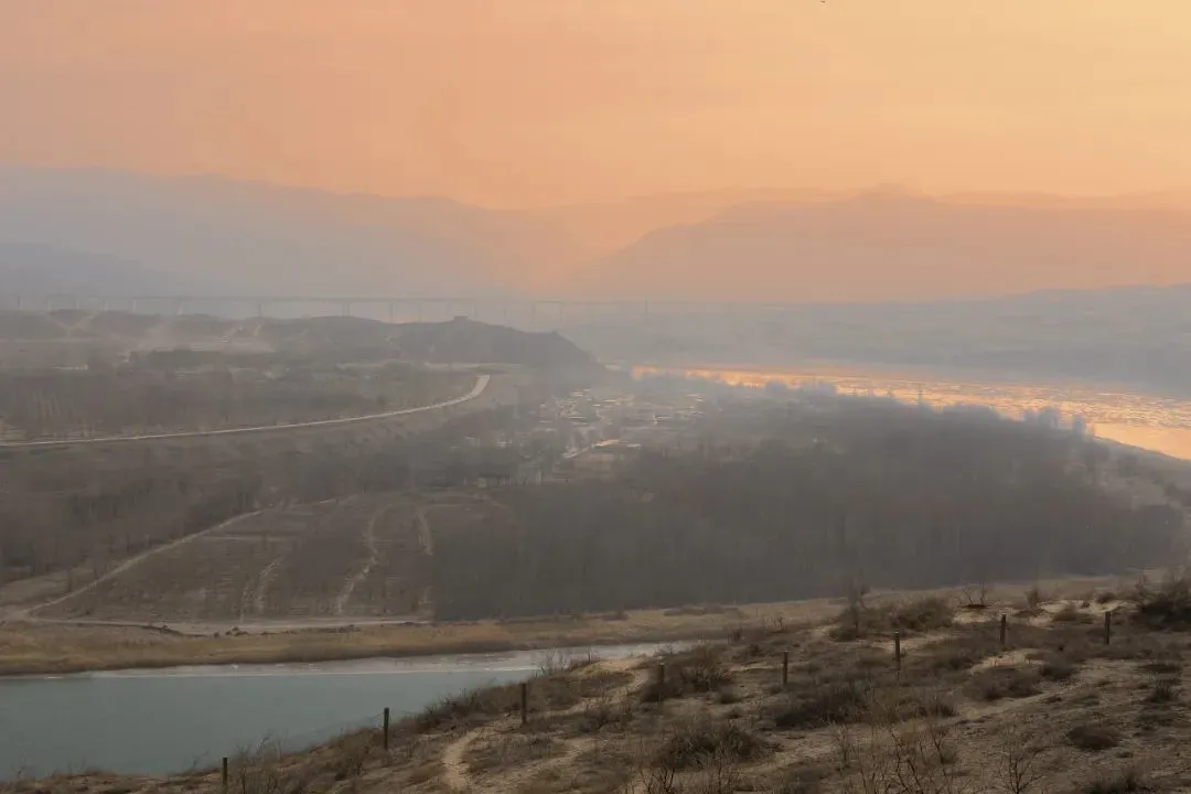 博主久德Jude,在黄河边、明长城上,拍到了日落。