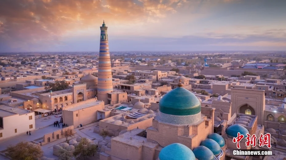 希瓦古城位于乌兹别克斯坦西南部阿姆河下游的绿洲上,自公元4世纪以来就是丝绸之路上的重镇之一。2014年4月,中乌双方决定,在希瓦古城选择文物古迹共同开展文物保护修复工作。这也是中国在乌兹别克斯坦开展的首个文物保护修复项目。图为乌兹别克斯坦世界遗产和历史文化名城——希瓦古城。
