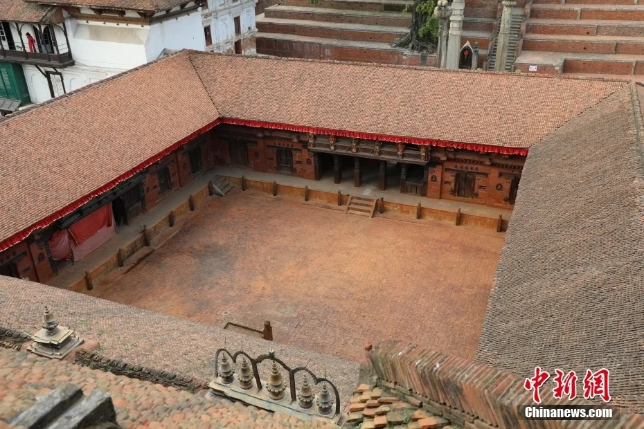尼泊尔政府向中国提出援助请求后,经双方协商,援尼泊尔加德满都杜巴广场九层神庙保护修复项目列入中国援尼震后重建重点项目。这也是中国在尼开展的首个大规模文物援外项目。图为当地时间2024年10月25日,摄于尼泊尔加德满都杜巴广场的九层神庙。