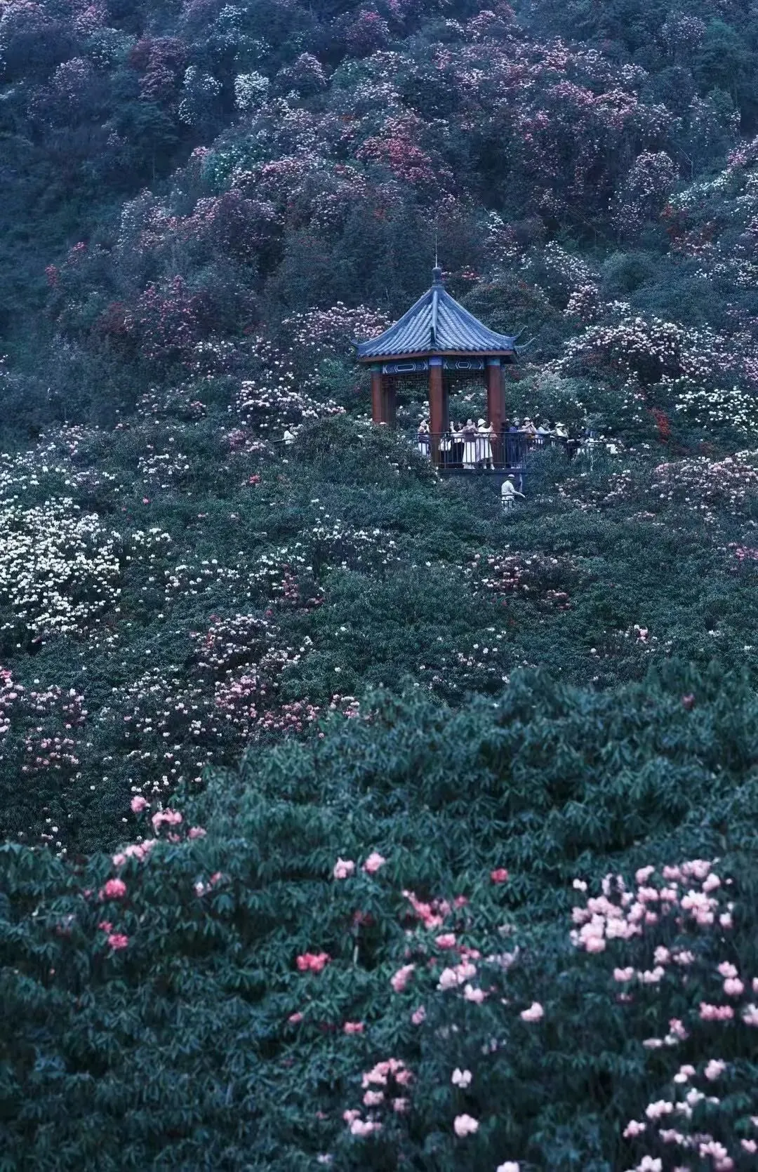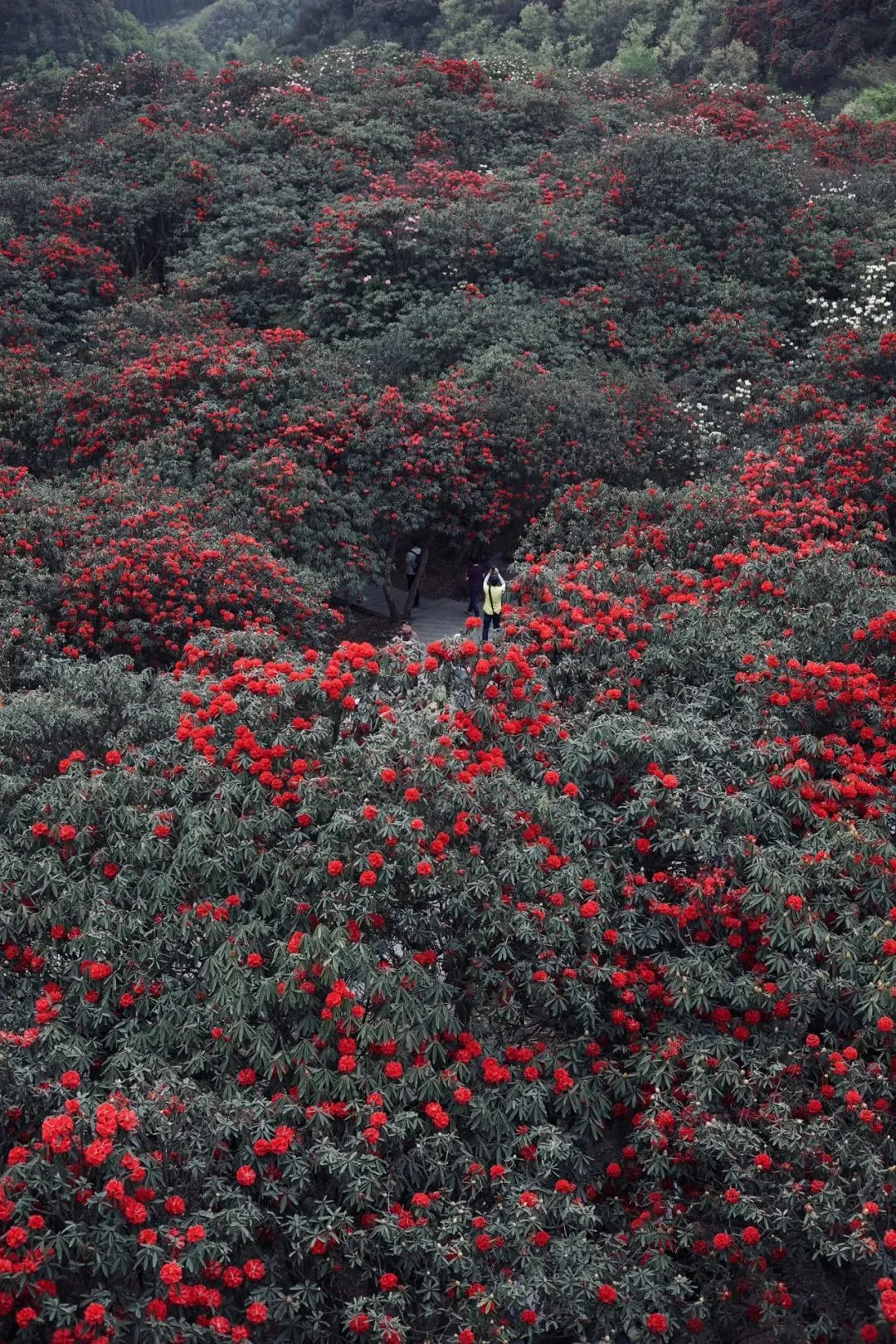 近126平方公里的原始杜鹃林,花海足足绵延50多公里,被称为“地球上的彩带”和“世界花园”。