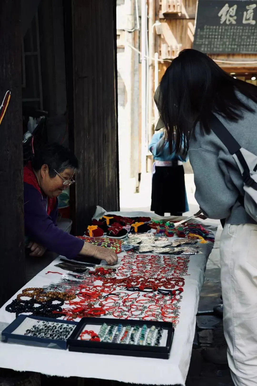 奶奶们在巷子的拐角、在老屋的门口出摊,卖一些小物件,一针一线将这感受不到时间流动的时光缝缝补补。