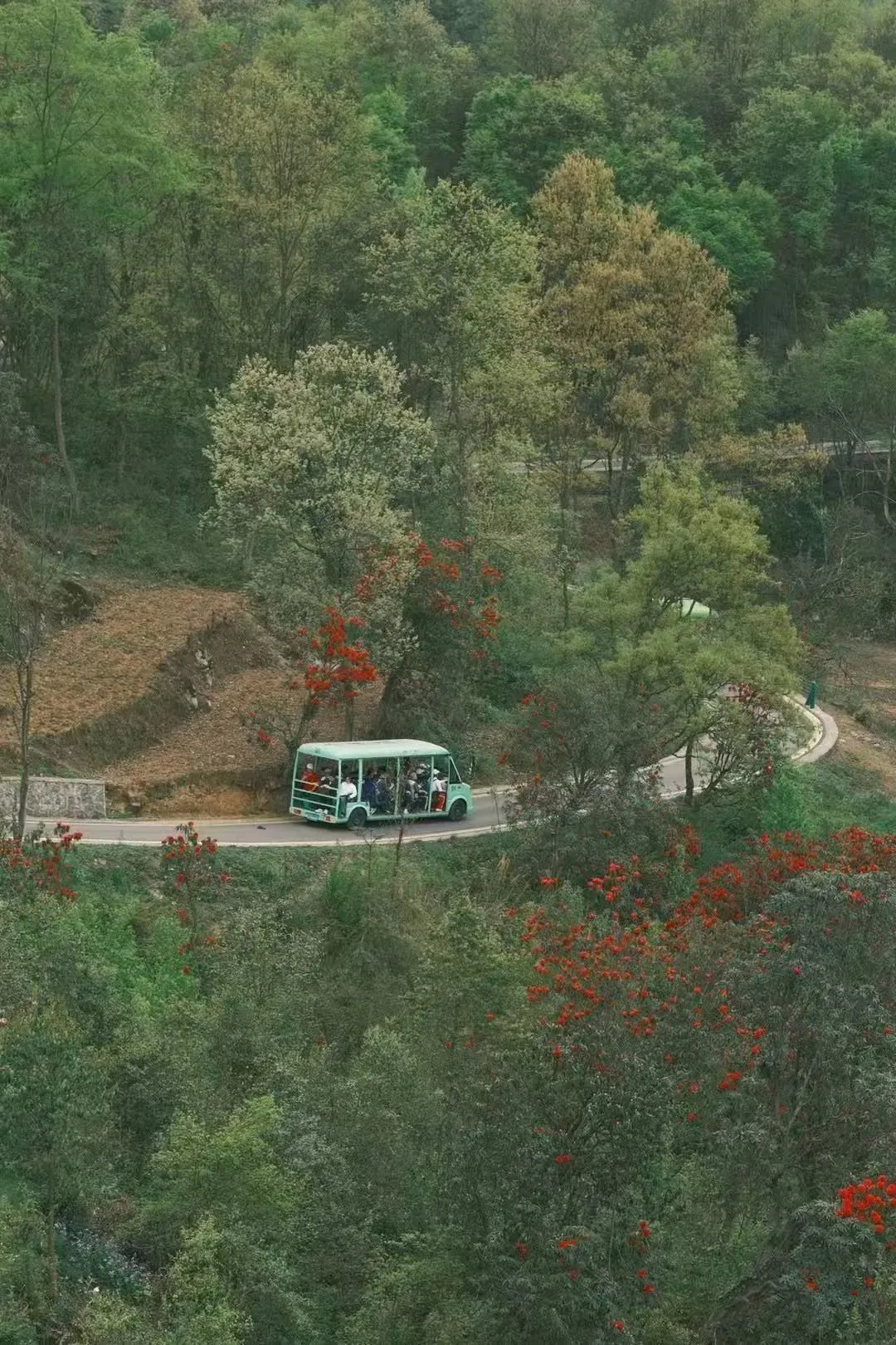 但满山热烈的红和温柔的粉,将这片山林装点得五彩斑斓。