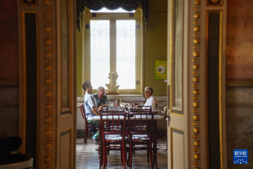 4月4日,在哥斯达黎加首都圣何塞,人们在一家咖啡厅里聊天。 新华社记者 许咏政 摄