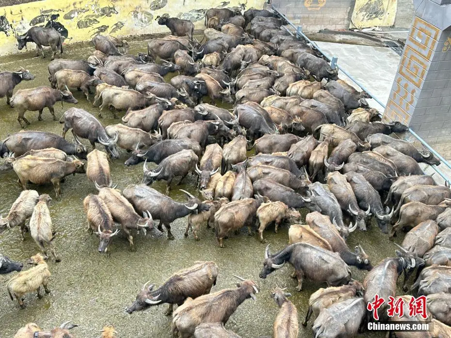 随着栅栏门的开启,早已等候在此的200余头大大小小的水牛争先恐后冲向嘉陵江。王爵 摄