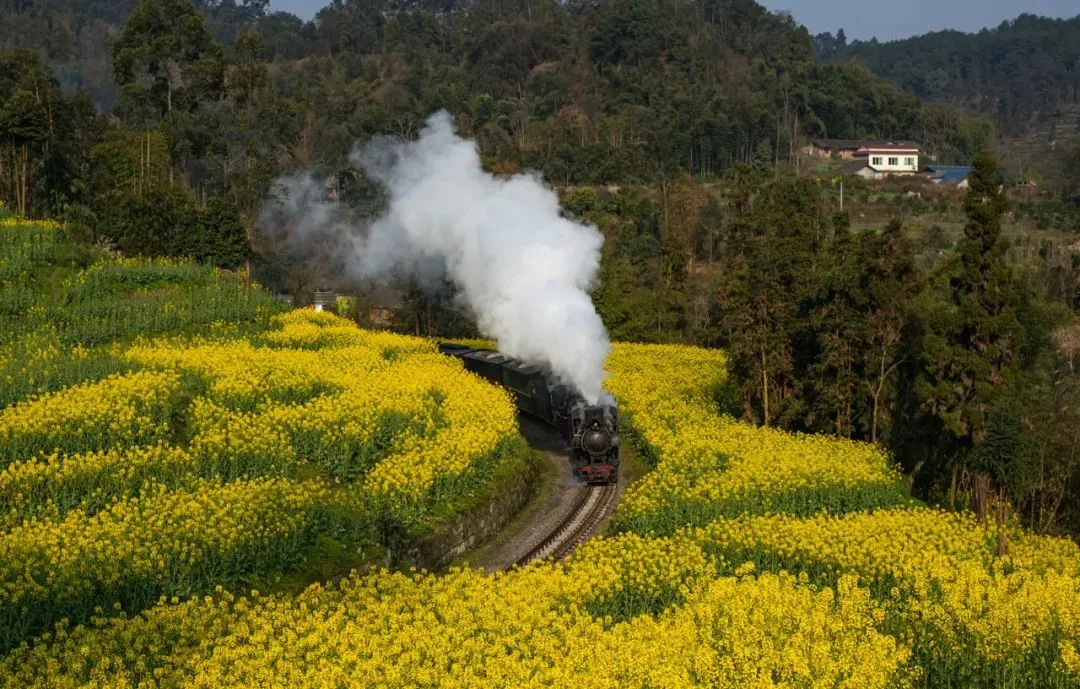 但我若是说起油菜花田里,开往春天的嘉阳小火车,是不是就有了画面。