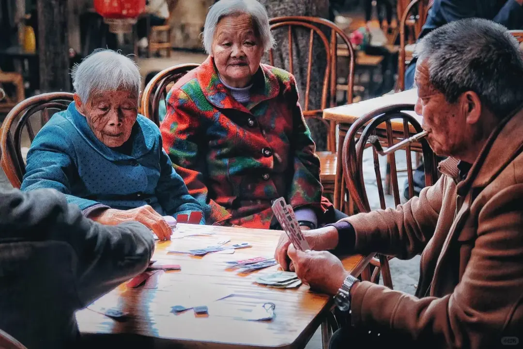 在罗城古镇的凉厅子下,总能看到一群老人围坐,手捏泛黄的纸牌,指节叩击木桌的节奏像极岷江的潮汐。
