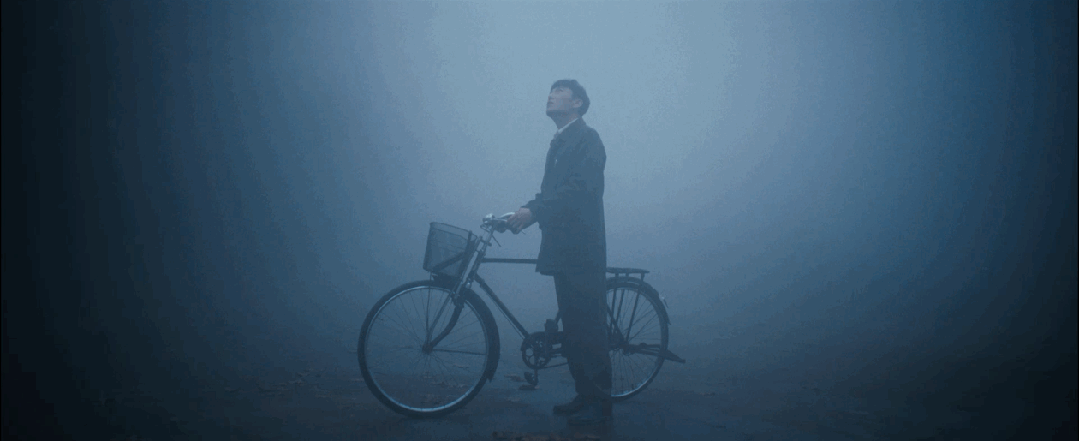 马家坡水库在迷雾中渐现,秦昊骑着二八自行车穿梭蜿蜒村道。