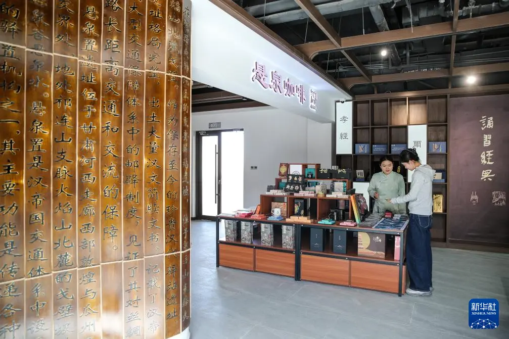 4月29日,游客在悬泉置遗址景区挑选文创产品。