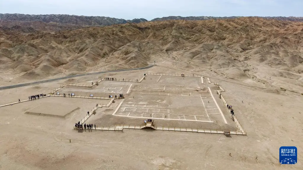 4月29日,嘉宾在世界文化遗产悬泉置遗址参观(无人机照片)。