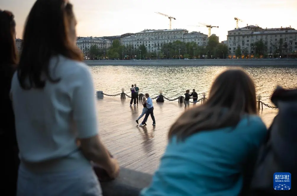 4月22日,人们在俄罗斯莫斯科的高尔基公园跳舞。