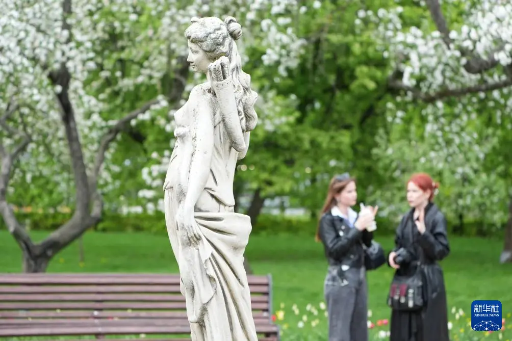 这是5月5日在俄罗斯莫斯科科罗缅斯克庄园内拍摄的一尊雕像。