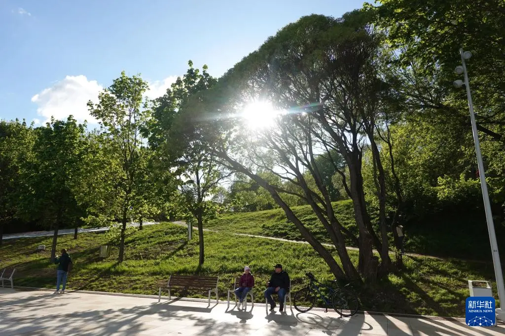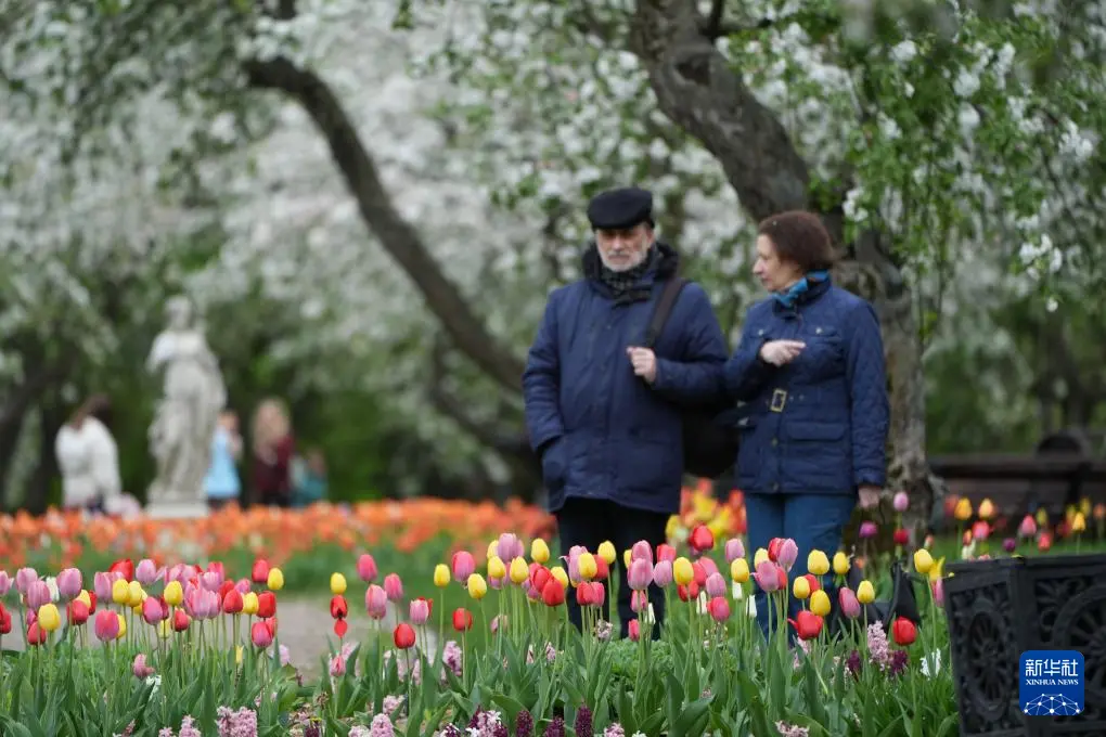 5月5日,在俄罗斯莫斯科,人们在科罗缅斯克庄园内休闲。