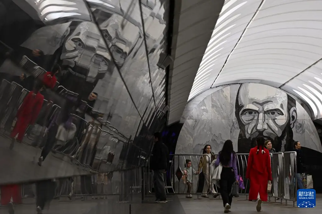 这是5月4日在俄罗斯莫斯科地铁陀思妥耶夫斯基站拍摄的陀思妥耶夫斯基像。