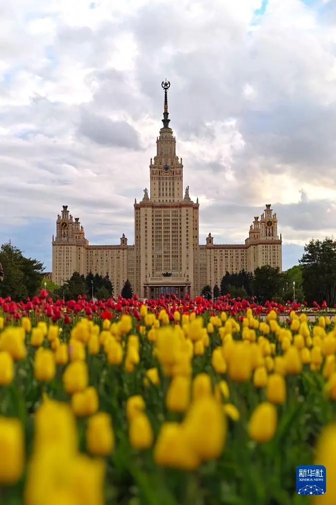 这是5月5日拍摄的俄罗斯莫斯科大学主楼。