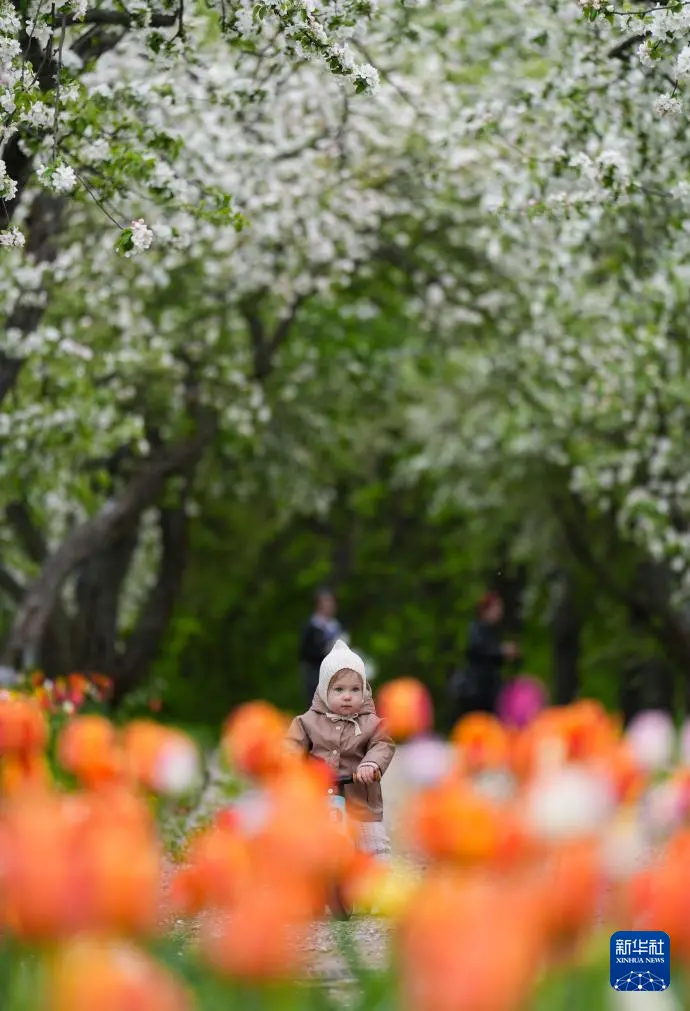 5月5日,在俄罗斯莫斯科,一名儿童在科罗缅斯克庄园内玩耍。