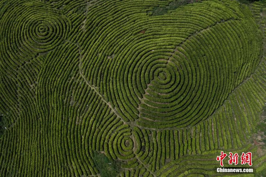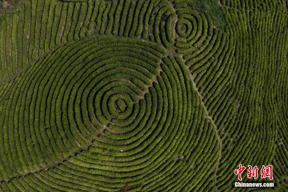 图为无人机视角下的白茶基地,如同“大地指纹”。李相芬 摄