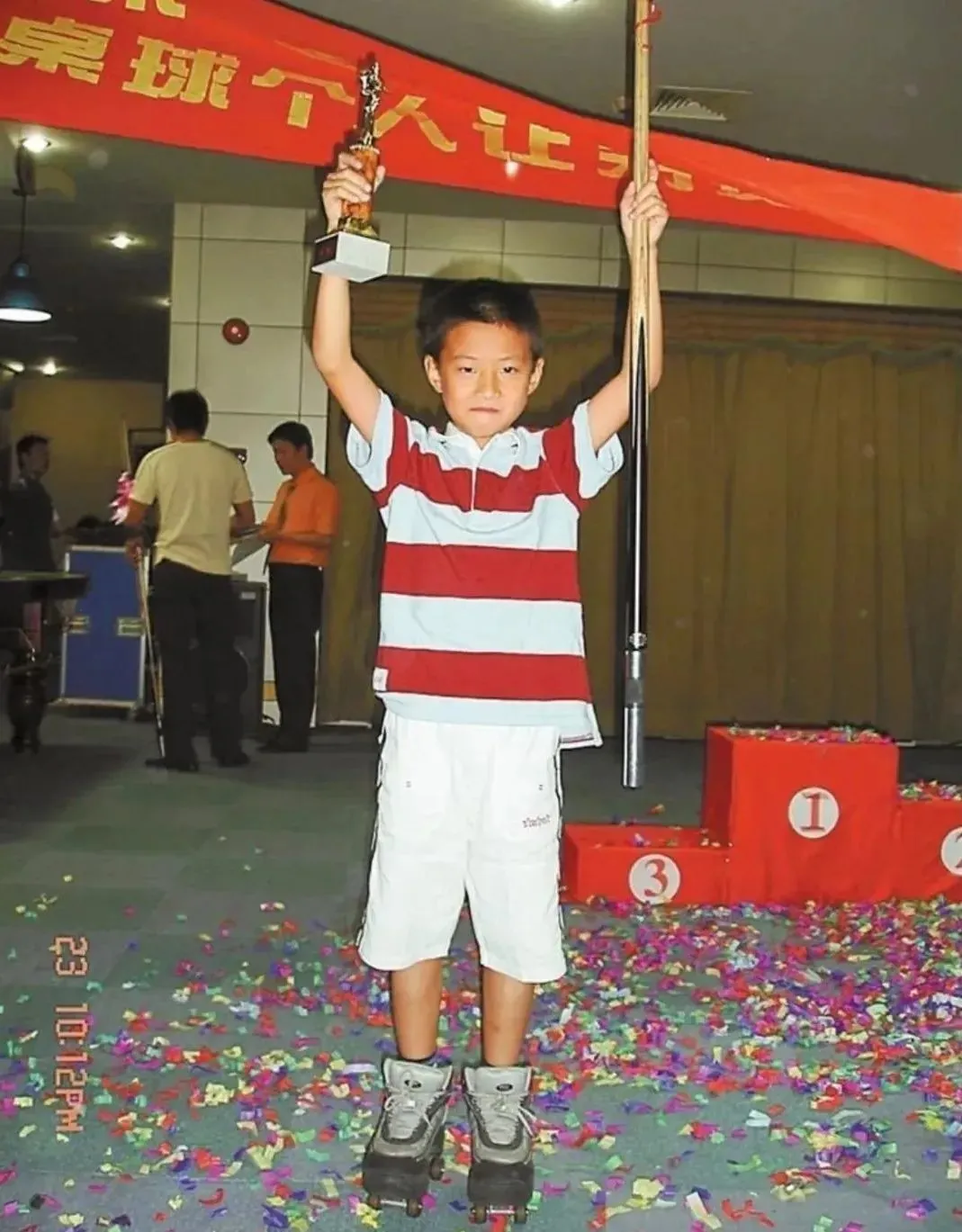 赵心童8岁那年第一次拿起球杆陪爸爸和他的朋友打台球。后来被比较懂台球的前辈发现他有天赋,爸妈就带着他在全国各地找教练和老师。