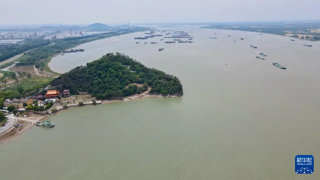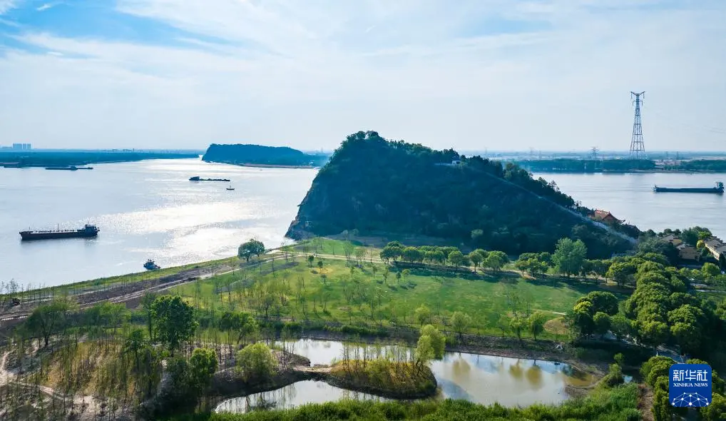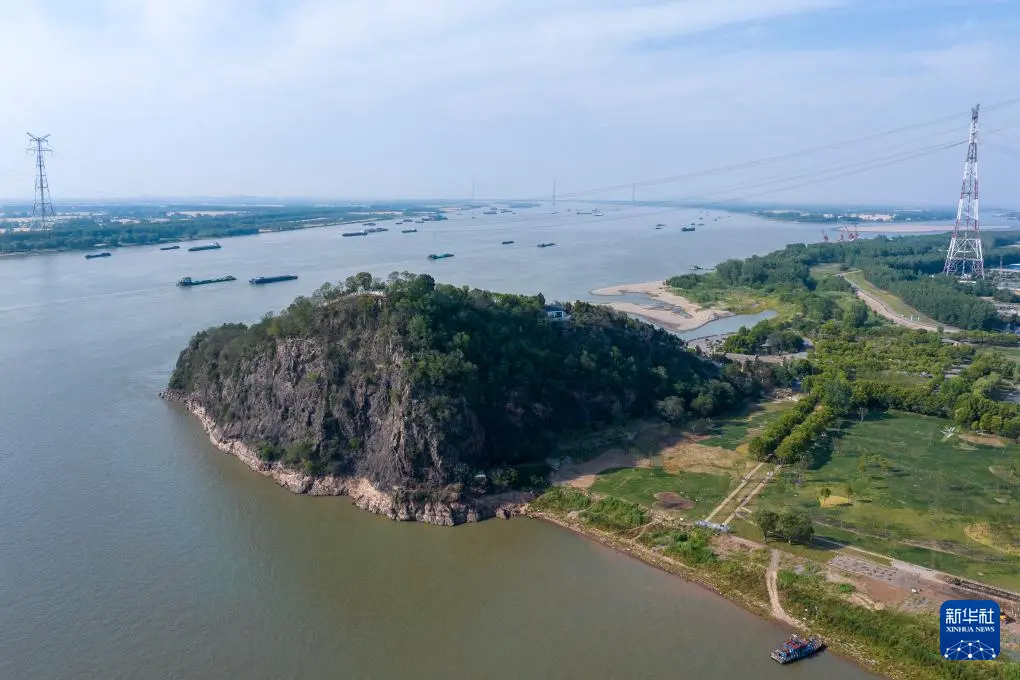5月13日在安徽芜湖拍摄的长江与天门山(无人机照片)。