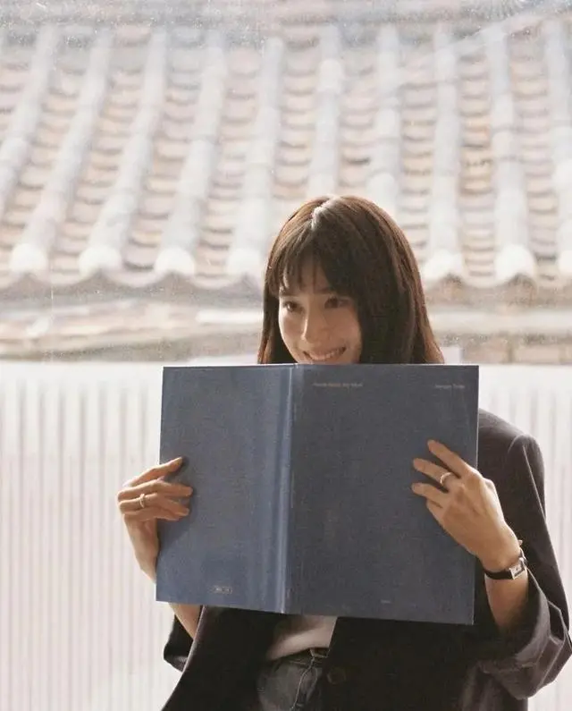 深谙这种穿搭的秀智,她的衬衫总是敞开最上面的两颗纽扣,袖口随意挽起,露出手腕的纤细线条;日常爱穿的带着天然褶皱的亚麻连衣裙,就像是刚从衣柜里随手拎出的旧爱;而用廓形西装内搭亮色针织时,秀智也会让这种硬朗与柔软达成微妙平衡。