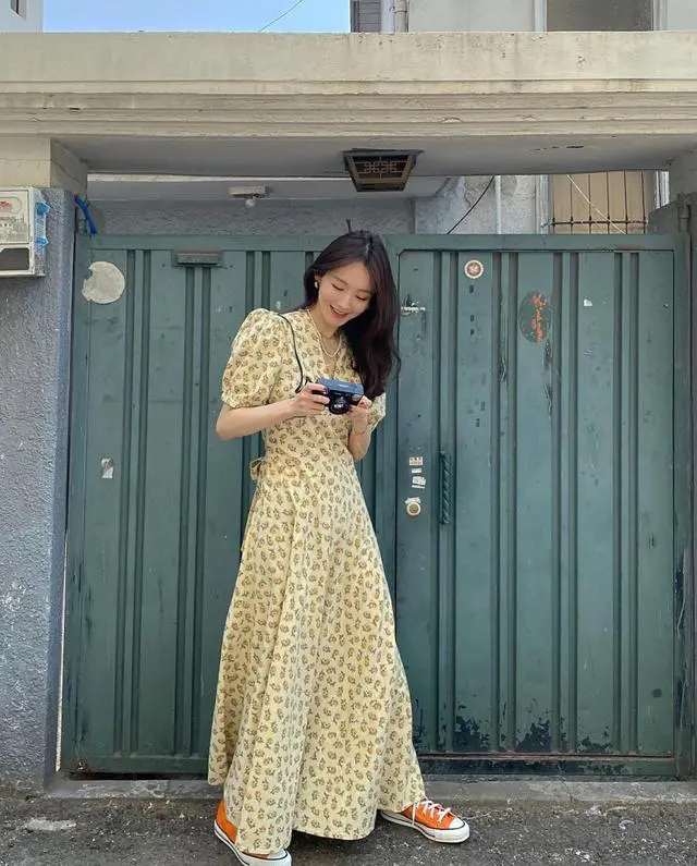 因为最高级的造型,是让衣服成为气质的注脚,而非喧宾夺主,像姜敏京身上这件碎花洋裙和珍珠项链以及匡威搭配时,就更能凸显个人的清纯气息,而郑恩彩身上穿着的这件极简衬衫裙,也能完美契合她的风格。